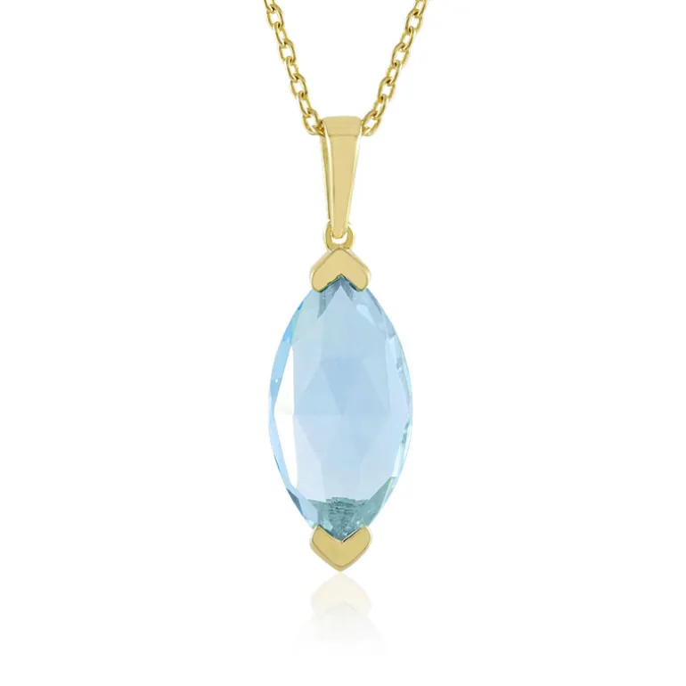 Dieser exquisite Anhänger zeigt einen atemberaubenden himmelblauen Topas aus Brasilien, der im Marquiseschliff geschliffen wurde, um das Licht schön einzufangen. Der Anhänger aus vergoldetem 925er Sterlingsilber ist perfekt, um jedem Outfit einen Hauch von Eleganz zu verleihen. Er eignet sich sowohl für legere als auch für formelle Anlässe. Kombinieren Sie ihn mit einem klassischen Kleid oder einer schicken Bluse, um ein subtiles, aber raffiniertes Statement abzugeben.