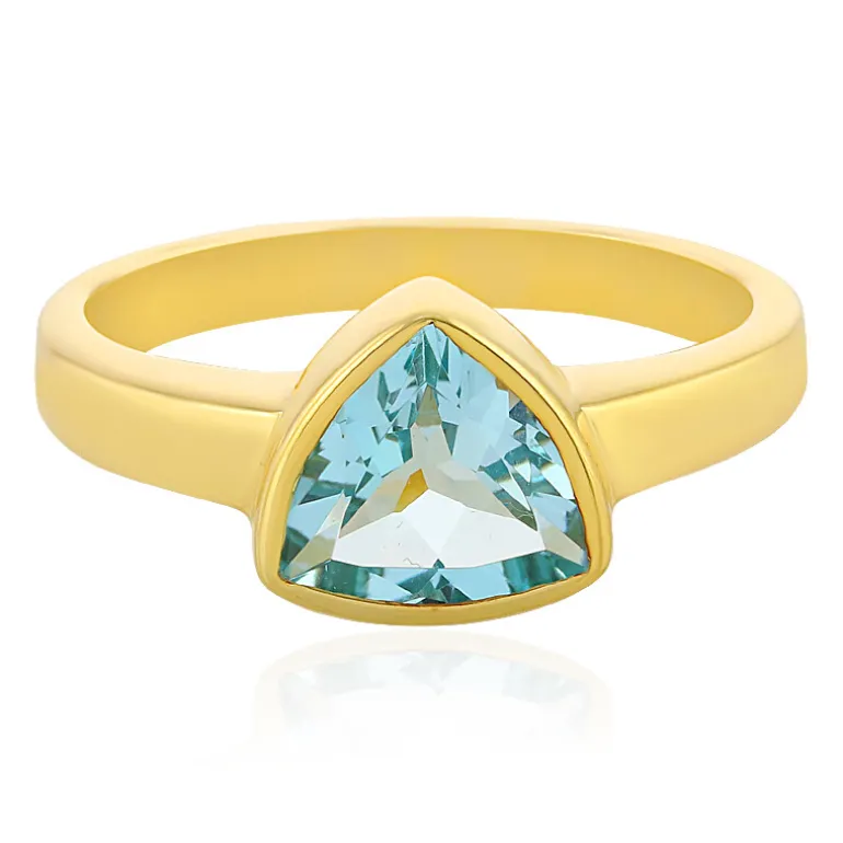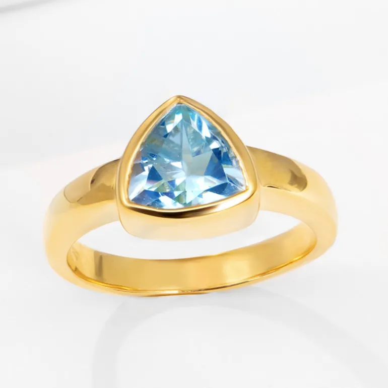 Fangen Sie die Schönheit des brasilianischen Himmels mit diesem exquisiten himmelblauen Topasring ein, der zu unserer MONOSONO COLLECTION gehört. Der schillernde Topas von 1,791 Karat mit einzigartigem Trilliant-Schliff reflektiert das Licht auf wunderbare Weise und ist in ein hochwertiges 925er Sterlingsilberband mit luxuriöser Goldplattierung gefasst. Der 8 mm große Edelstein in der Mitte des Armbands ist ein echter Blickfang und eignet sich sowohl für legere Anlässe als auch für elegantere Veranstaltungen. Kombinieren Sie ihn mit Ihren goldenen Lieblingsaccessoires, um einen harmonischen und stilvollen Look zu kreieren.