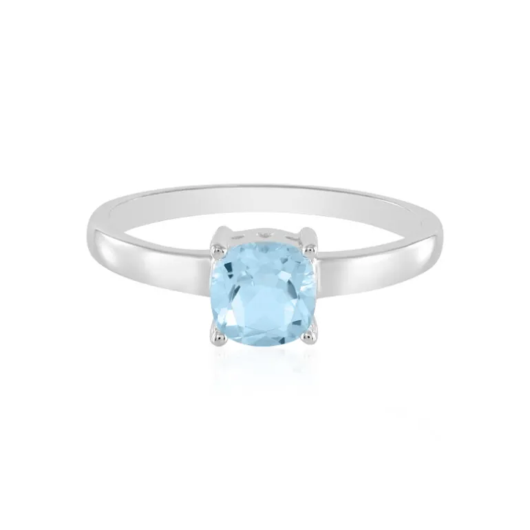 Dieser Ring mit einem himmelblauen Topas aus Madagaskar ist ein exquisites Schmuckstück, das mit seinen ruhigen Blautönen besticht und jedem Ensemble einen Hauch von Raffinesse verleiht. Eingebettet in die glänzende Umarmung von 925er Sterlingsilber mit einer Platinbeschichtung, reflektiert der antike Kissenschliff des Steins das Licht wunderschön und bietet eine delikate Balance zwischen zeitgenössischem Stil und Vintage-Charme. Mit einem Gewicht von 1,216 Karat und einer Größe von ca. 6 mm verkörpert dieser Edelstein perfekt die Essenz von raffinierter Eleganz. Der Ring ist ideal für das Tragen am Tag und am Abend und passt sowohl zu legerem Chic als auch zu formeller Kleidung. Lassen Sie diesen zeitlosen Schatz seinen ruhigen himmelblauen Charme an Ihrem Finger entfalten.