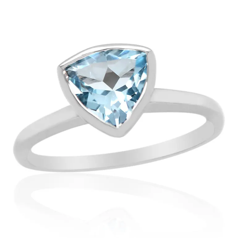 Entdecken Sie die Anziehungskraft des brasilianischen Himmels mit diesem bezaubernden Ring aus 1,88 Karat Topas im Trillant-Schliff. Die makellosen Facetten des Edelsteins zeigen ein ruhiges Azur, das an einen friedlichen Himmel erinnert und durch das glänzende Band aus platiniertem 925er Sterlingsilber noch verstärkt wird. Dieses moderne Schmuckstück ist vielseitig genug, um sowohl tagsüber als auch abends getragen zu werden. Kombinieren Sie ihn mit Ihrem Lieblingsoutfit, um einen subtilen Farbklecks und Raffinesse hinzuzufügen.