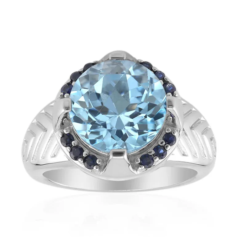 Brasilianischer Himmelblauer Topas & Saphir Silberring, 4,1ct