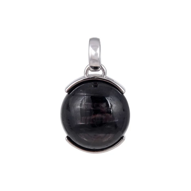Entdecken Sie die Faszination dieses kanadischen 13-karätigen Hypersthen, eingefasst in einen eleganten Anhänger aus 925er Sterlingsilber. Die faszinierenden dunklen Farbtöne des polierten 14 mm großen, runden Cabochons bilden einen faszinierenden visuellen Kontrast zum glänzenden Silber. Dieses moderne Schmuckstück ist vielseitig einsetzbar und hat ein geringes Gewicht, was es zu einer bequemen Wahl für den Alltag macht. Kombinieren Sie es mit einer frischen weißen Bluse oder einem kleinen schwarzen Kleid für einen atemberaubenden Effekt, der Ihren Stil bei jedem Anlass aufwertet.