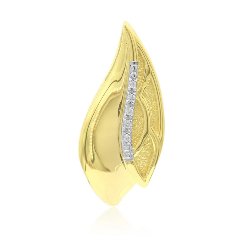 Entdecken Sie die Verschmelzung von Eleganz und Innovation mit diesem fesselnden Anhänger aus vergoldetem Silber. Mit seinem eleganten Blattdesign, das mit einer zarten Reihe von Diamanten mit einer Reinheit von I1 von insgesamt 0,027 Karat verziert ist, verkörpert dieses Schmuckstück modernen Charme. Der Glanz der Diamanten im Rundschliff kontrastiert elegant mit dem goldenen Farbton des 925er Sterlingsilbers und verleiht Ihrem Ensemble einen Hauch von naturinspirierter Raffinesse. Dieser Anhänger eignet sich perfekt, um Ihrer Alltagskleidung ein subtiles Funkeln zu verleihen oder Ihren Abendlook aufzuwerten, und verkörpert das Wesen von Anmut und Vielseitigkeit.