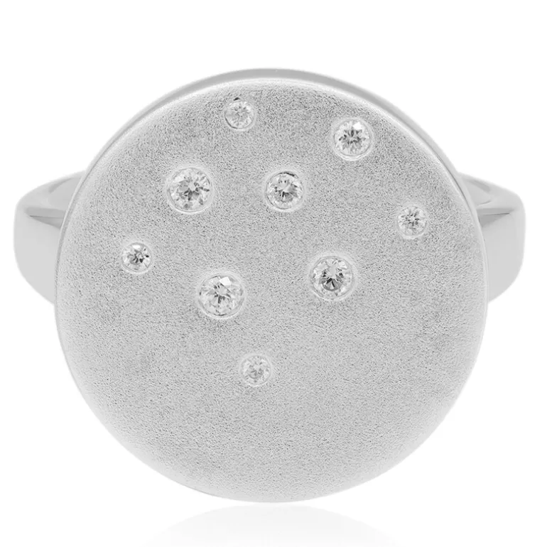 Entdecken Sie zeitlose Eleganz mit diesem Ring aus Sterlingsilber, gekrönt von einer Konstellation aus Diamanten im Brillantschliff von 0,083 Karat. Die mattierte Oberfläche strahlt Schlichtheit und modernen Charme aus und bietet einen modernen Twist, der sich für den Alltag oder besondere Anlässe eignet. Dieses vielseitige Schmuckstück mit einem Gewicht von ca. 4,36 g ist ein Muss für jede Schmucksammlung und passt sowohl zu legeren als auch zu formellen Anlässen.