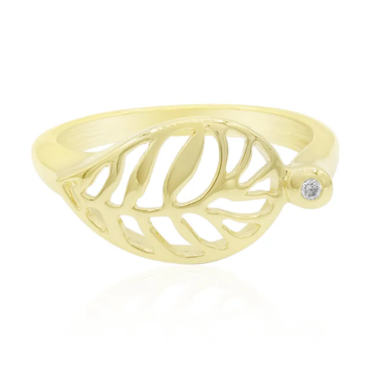 Blattmuster 0,014 ct Diamant Goldplattierter Silberring