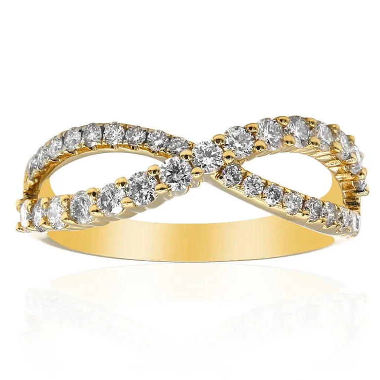 Dieser raffinierte und strahlende Ring aus 14-karätigem Gelbgold ist ein wahres Meisterwerk von CIRARI. Mit einem Gesamtgewicht von 0,773 Karat an Diamanten, 18 kleineren Diamanten und 15 größeren Steinen im Brillantschliff bietet er ein unvergleichliches Funkeln. Sein kompliziertes Design, das an ein elegant ineinandergreifendes Doppelband erinnert, ist ein Ausdruck von Luxus und Eleganz. Dieser Ring eignet sich perfekt für besondere Anlässe oder als glamouröses Accessoire für den Alltag und ist eine unvergängliche Ergänzung für jede Schmucksammlung.