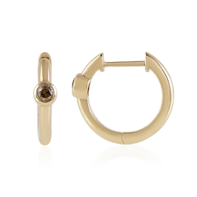 Diese eleganten Reif-Ohrringe sind ein Beweis für schlichte Eleganz. Sie sind mit 0,18 Karat I1 runden Schokoladenbrillanten in glänzendem 375er Gelbgold besetzt. Sie sind perfekt, um jedem Ensemble einen Hauch von Raffinesse zu verleihen, und fangen das Licht so ein, dass sie die Aufmerksamkeit auf Ihren strahlenden Teint lenken. Sie sind sowohl für den Tag als auch für den Abend geeignet und passen sowohl zur Berufskleidung als auch zu einem legeren Outfit, das einen Hauch von Luxus versprüht.