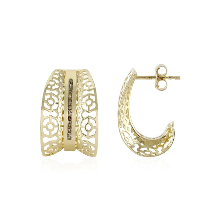 Fesseln Sie den Raum mit diesen schicken Chocolate Diamond Earrings, die fachmännisch aus glänzendem 9K Gelbgold gefertigt wurden. Jeder Ohrring besteht aus einer Reihe funkelnder I1-Diamanten im Rundschliff mit einem Gesamtgewicht von 0,198 Karat, die in einem filigranen Design eingebettet sind, das Raffinesse ausstrahlt. Diese Ohrringe eignen sich perfekt, um Ihrer Abendgarderobe einen Hauch von Eleganz zu verleihen, und sind ein vielseitiges Accessoire sowohl für zwanglose Brunches als auch für formelle Anlässe.