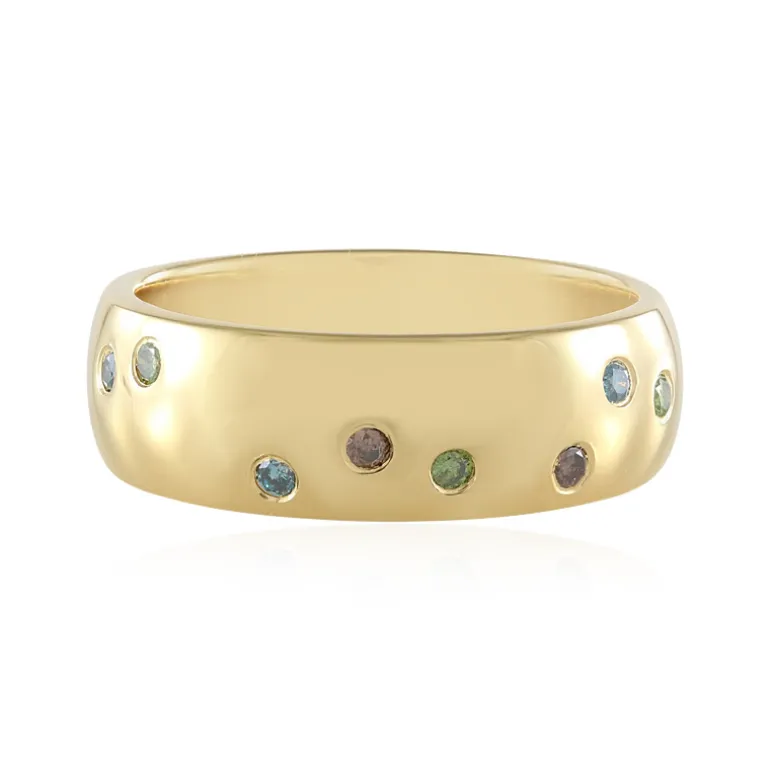 Eine exquisite Mischung aus blauen, schokoladenfarbenen und grünen I2-Diamanten beleuchtet diesen vergoldeten Sterlingsilberring. Mit einem Gesamtkaratgewicht von 0,098 ct und einem raffinierten Band-Design ist er perfekt, um Ihrer Kleidung einen Hauch von Eleganz zu verleihen. Dieser Ring ist ideal für besondere Anlässe oder für den Alltag. Er passt sowohl zu formellen als auch zu legeren Outfits und unterstreicht Ihren Stil mit einem Spritzer lebendiger Farbe.
