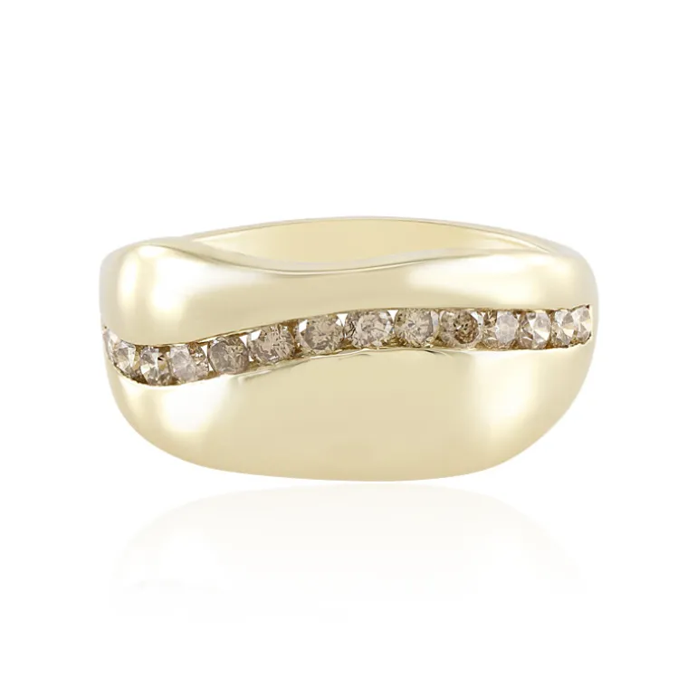 Genießen Sie die zeitlose Eleganz dieses atemberaubenden Rings aus 9 Karat Gold, der mit 0,432 Karat funkelnden I2 Champagner-Diamanten besetzt ist. Die sanfte Wölbung und die brillanten Edelsteine im Rundschliff verkörpern Eleganz und verleihen jedem Ensemble einen Hauch von Glamour. Dieser Ring eignet sich sowohl für besondere Anlässe als auch für das tägliche Tragen und ist ein Muss für alle, die luxuriöse Schlichtheit schätzen.