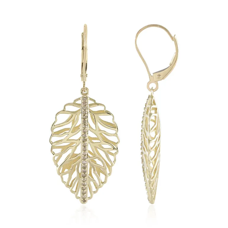 Champagner Diamant 9k Gold Blatt Ohrringe, 0,216ct