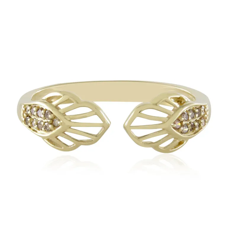 Entdecken Sie Eleganz mit diesem exquisiten Champagner-Diamant-Goldring von Ornaments by de Melo. Der Ring ist aus 9 Karat Gelbgold gefertigt und verfügt über eine schillernde Reihe von champagnerfarbenen I2-Diamanten mit einem Gesamtkaratgewicht von 0,09 Karat, die in einem zarten und künstlerischen Motiv gefasst sind. Dieser Ring eignet sich perfekt, um sowohl lässigen als auch formellen Outfits einen Hauch von Raffinesse zu verleihen. Er ist ideal für besondere Anlässe oder als Statement-Piece.