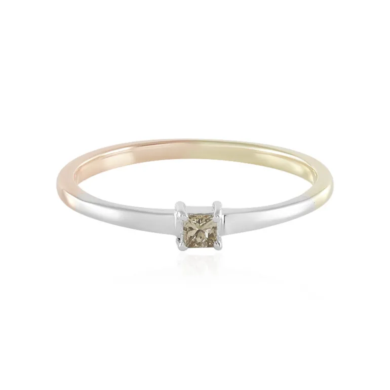 Entdecken Sie die Anziehungskraft des Minimalismus mit diesem dreifarbigen Goldring, der einen champagnerfarbenen Diamanten von 0,09 Karat präsentiert. Der quadratische Prinzess-Schliff des Edelsteins strahlt unaufdringliche Eleganz aus, während die harmonische Mischung aus Gelb-, Rosé- und Weißgold (9K) zeitgenössischen Stil verkörpert. Dieses exquisite Stück ist ein vielseitiges Accessoire, das sich sowohl für die Freizeit als auch für formelle Anlässe eignet und jedem Ensemble einen Hauch von Raffinesse verleiht.