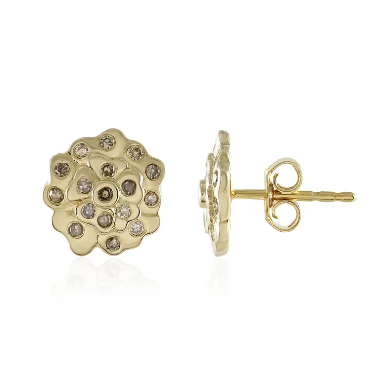 Entdecken Sie den gedämpften Luxus dieser Ohrringe aus vergoldetem 925er Sterlingsilber, die mit 34 I2 Champagne-Diamanten von insgesamt 0,306 Karat besetzt sind. Jeder Edelstein wurde sorgfältig geschliffen, um das Glühen eines feierlichen Toasts einzufangen. Die runde Form und das florale Motiv verleihen ihnen eine zeitlose Eleganz, die sich sowohl für einen legeren Brunch als auch für eine Abendgala eignet. Ergänzen Sie Ihre Sammlung mit diesen funkelnden Schätzen und verleihen Sie jedem Ensemble einen Hauch von Wärme.