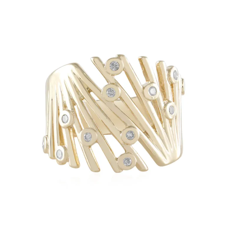 Ein raffiniertes Schmuckstück von de Melo: Dieser Diamantring aus Gold ist mit 12 runden Diamanten im Brillantschliff besetzt, die in 375er Gold gefasst sind. Mit einem Gewicht von 0,18 Karat besticht dieser elegante Ring durch sein einzigartiges Design, das die Blicke auf sich zieht. Er eignet sich sowohl für den eleganten Alltag als auch für besondere Anlässe. Er passt sowohl zu legerer als auch zu formeller Kleidung und verleiht jedem Ensemble einen Hauch von Luxus.