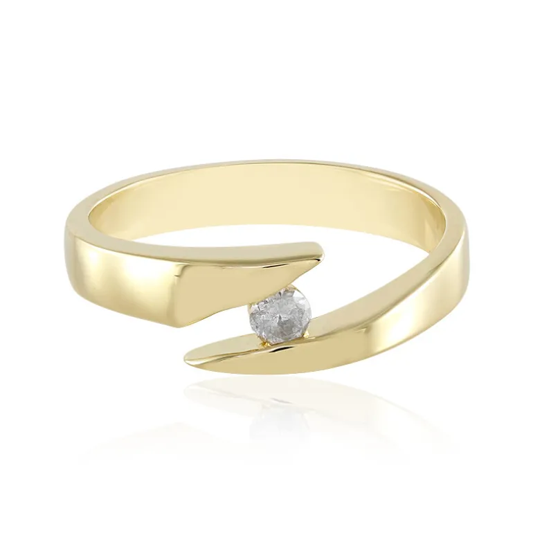 Entdecken Sie die Faszination dieses exquisiten Goldrings mit einem runden Diamanten von 0,103 Karat. Das elegante Design dieses Rings aus 375er Gold zieht mit seiner modernen asymmetrischen Form mühelos die Blicke auf sich. Er eignet sich sowohl für den Alltag als auch für besondere Anlässe. Kombinieren Sie ihn mit einem schicken Abendkleid oder einem stilvollen Business-Outfit, um Ihr Ensemble aufzuwerten.