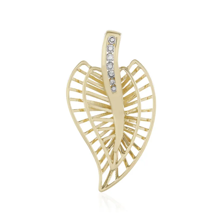 Entdecken Sie den Charme dieses bezaubernden Anhängers aus 9-karätigem Gold mit einer zarten gerippten Herzsilhouette, die Romantik und Raffinesse ausstrahlt. Eine lineare Abfolge funkelnder Diamanten mit einer Reinheit von I2 und einem Gesamtgewicht von 0,06 ct verleiht jedem Ensemble ein subtiles Funkeln, das perfekt zur Geltung kommt. Dieser Anhänger wurde mit Bedacht mit einer luftigen, offenen Struktur gefertigt, die ein elegantes, leichtes und dennoch auffälliges Stück ergibt. Er eignet sich ideal als Geschenk oder für besondere Anlässe. Er schmiegt sich anmutig an Ihr Schlüsselbein und fängt das Licht und die Bewunderung der Betrachter ein.