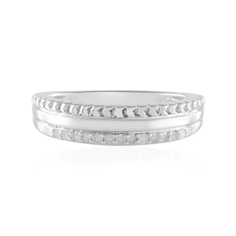 Dieser schicke Diamantring aus Sterlingsilber ist mit 13 Diamanten im Rundschliff I2 (I) von insgesamt 0,081 Karat besetzt. Der Ring aus 925er Sterlingsilber wiegt ungefähr 1,8 Gramm und ist mit einer modernen Eleganz entworfen, die sowohl für legere als auch für formelle Anlässe perfekt ist. Kombinieren Sie es mit Ihrem Lieblingsabendkleid oder Ihrer schicken Bürokleidung für einen Hauch von Funkeln und Raffinesse.