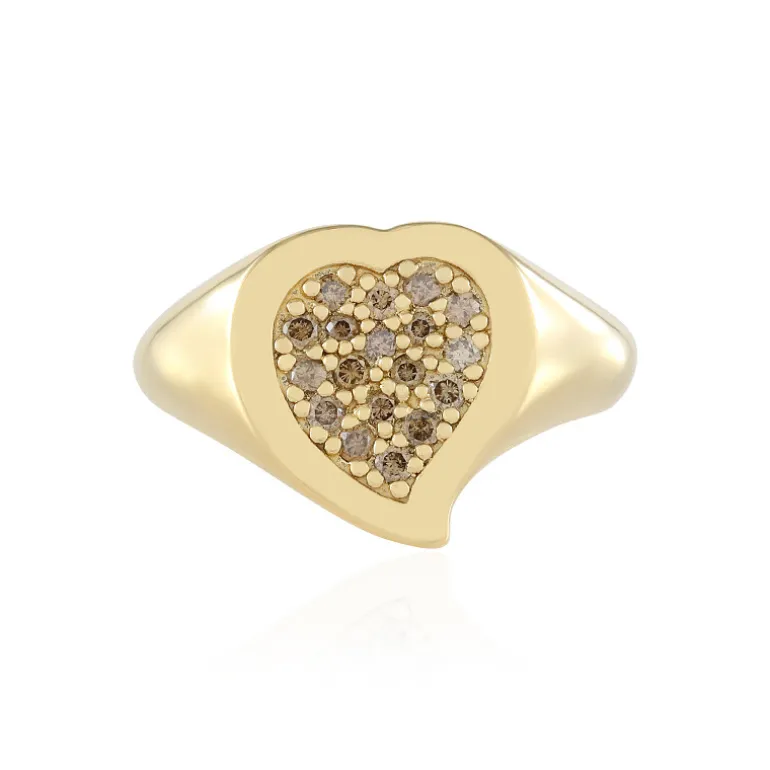 Entdecken Sie die Eleganz dieses schicken Rings in Herzform, der mit I2-Schoko-Diamanten verziert ist. Er ist aus vergoldetem 925er Sterlingsilber gefertigt und schimmert mit 0,225 Karat funkelnder Brillanz. Dieser Ring passt sowohl zu legeren als auch zu formellen Anlässen und verleiht jedem Outfit einen Hauch von Raffinesse. Er ist ideal für besondere Anlässe oder den Alltag und ein Muss für jeden Schmuckliebhaber.