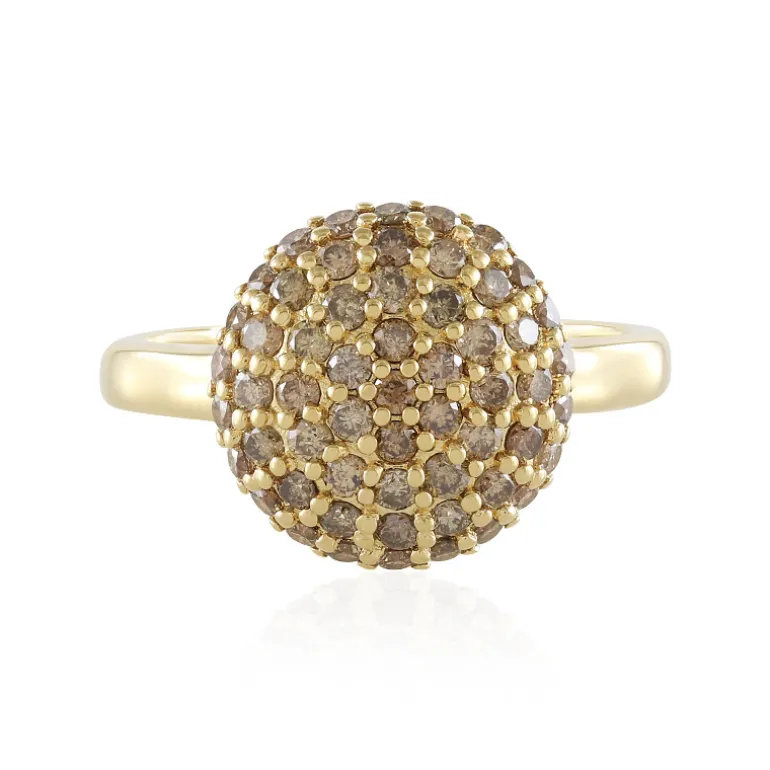 Enthüllen Sie Eleganz mit diesem atemberaubenden Ring, der eine schillernde Reihe von I2-Schokoladen-Diamanten von insgesamt 0,908 ct in vergoldetem 925er Sterlingsilber präsentiert. Das 24×20 mm große Design bietet einen luxuriösen Touch, perfekt für Abendkleidung oder besondere Anlässe. Kombinieren Sie es mit einem schicken schwarzen Kleid oder einer formellen Kleidung für einen unschlagbaren Look, der mit jedem Blick raffinierte Raffinesse vermittelt.