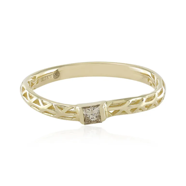 Entdecken Sie die zeitlose Eleganz unseres Chic Chocolate Diamond Rings, bei dem die Verlockung eines Diamanten im Prinzessschliff auf die Wärme von 9-karätigem Gelbgold trifft. Dieses exquisite Schmuckstück aus der Kollektion Ornaments by de Melo wiegt etwa 1,03 Gramm und verfügt über ein zartes, durchbrochenes Design, das jedem Ensemble einen Hauch von Raffinesse verleiht. Der einzigartige Schokoladen-Diamant mit einem Gewicht von 0,09 Karat ist ein Beweis für moderne Eleganz und Stil und eignet sich perfekt für den täglichen Gebrauch oder für besondere Anlässe.