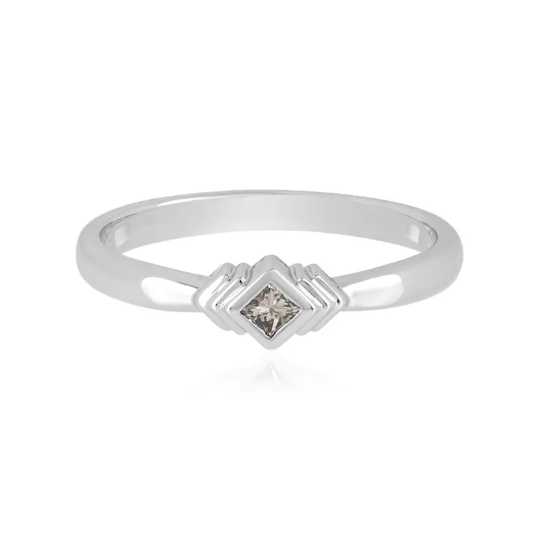 Entdecken Sie die Anziehungskraft des Minimalismus mit diesem Ring aus Sterlingsilber, der von einem 0,09-karätigen Schokoladendiamanten geschmückt wird, der durch seinen satten Farbton und seine funkelnde Klarheit besticht. Der mit Präzision gefertigte Ring verfügt über einen quadratischen Diamanten im Prinzessschliff, der in ein schlankes Band aus 925er Sterlingsilber gefasst ist und ca. 1,52 g wiegt. Sein modernes Design betont die einzigartige Farbe des Schokoladendiamanten und macht ihn zu einem vielseitigen Schmuckstück, das sowohl lässigen als auch formellen Ensembles einen eleganten Touch verleiht. Dieser Ring ist ideal für alle, die schlichte Eleganz zu schätzen wissen. Er ist ein durchdachtes Geschenk oder eine reizvolle Ergänzung für jede Schmucksammlung.
