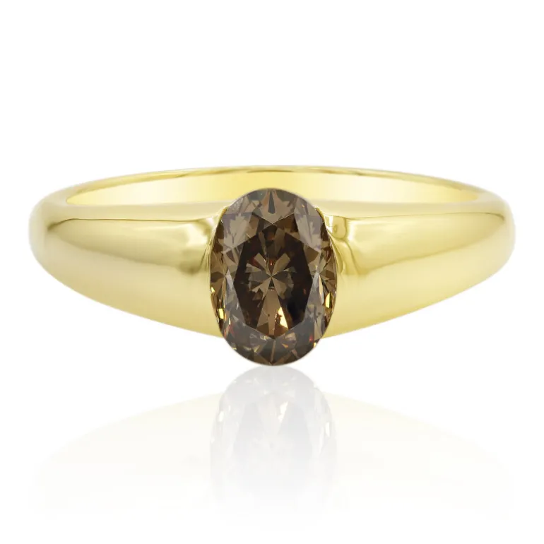 Entdecken Sie den Glanz dieses Rings aus 18 Karat Gelbgold mit einem australischen Cognac-Diamanten im Argyle-Schliff (0,867 Karat), der durch seinen ovalen Schliff besticht und ein auffälliges Herzstück bildet. Mit einer Größe von 23 x 20 mm und einem Gewicht von ca. 4,23 g ist dieses Schmuckstück ein Zeugnis von Luxus. Er ist ideal für elegante Soireen oder als glamouröser Alltagsschmuck und spiegelt Ihren anspruchsvollen Geschmack wider. Kombinieren Sie es mit Ihrer Lieblingsabendgarderobe für einen wirklich opulenten Look.