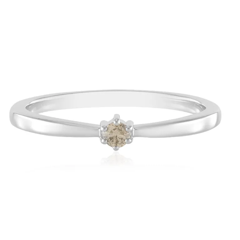 Dieser exquisite Ring enthält einen champagnerfarbenen Diamanten von 0,051 Karat, der fachmännisch mit einem runden Brillanten geschliffen wurde. Der Ring ist aus 925er Sterlingsilber mit einer glänzenden Platinbeschichtung gefertigt und bietet sowohl Eleganz als auch Haltbarkeit. Dieser Ring ist ideal, um jedem Outfit einen Hauch von Raffinesse zu verleihen, und eignet sich sowohl für legere als auch für formelle Anlässe. Kombinieren Sie ihn mit einem Cocktailkleid oder einer schicken Abendgarderobe für einen gehobenen Look.