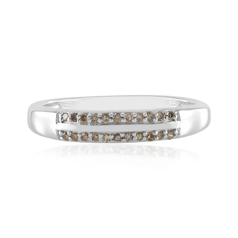 Dieser elegante Ring aus Sterlingsilber ist mit einer Reihe von 22 Schokoladendiamanten im I3-Rundschliff von insgesamt 0,103 Karat besetzt. Die warmen Farbtöne der Diamanten stehen in elegantem Kontrast zum kühlen Glanz des 925er Sterlingsilberbandes, das etwa 1,87 Gramm wiegt. Das Design ist sowohl modern als auch zeitlos und eignet sich perfekt zur Ergänzung von Alltagsoutfits oder zur Aufwertung von Abendgarderobe. Ob für sich selbst oder als Geschenk für einen besonderen Menschen, dieser Ring verleiht jedem Anlass einen Hauch von Raffinesse.