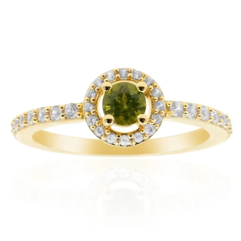 Entdecken Sie den Charme dieses Rings aus vergoldetem 925er Sterlingsilber mit einem wunderschön facettierten kenianischen Iolithen im Rundschliff. Umgeben von einem funkelnden Halo aus 32 kambodschanischen Zirkonen, bietet dieser Ring ein exquisites Design mit einem Gesamtgewicht von 0,655 ct. Sein schlichtes und modernes Design macht ihn zu einem vielseitigen Accessoire für den Alltag und besondere Anlässe. Verleihen Sie Ihrem Ensemble einen Hauch von Eleganz mit diesem bezaubernden Schmuckstück.