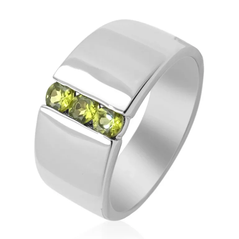 Entdecken Sie den subtilen Charme dieses modernen Bandrings mit drei Idocrases aus Kenia im Rundschliff mit insgesamt 0,365 Karat. Die elegante Fassung aus 925er Sterlingsilber mit einem Gewicht von ca. 4,93 Gramm bringt die leuchtend olivgrünen Edelsteine zur Geltung. Das zeitgemäße Design ist vielseitig genug für den Alltag und raffiniert für Abendveranstaltungen. Kombinieren Sie ihn mit einem frischen weißen Hemd oder einem kleinen schwarzen Kleid, um die natürliche Pracht der Edelsteine zur Geltung zu bringen.
