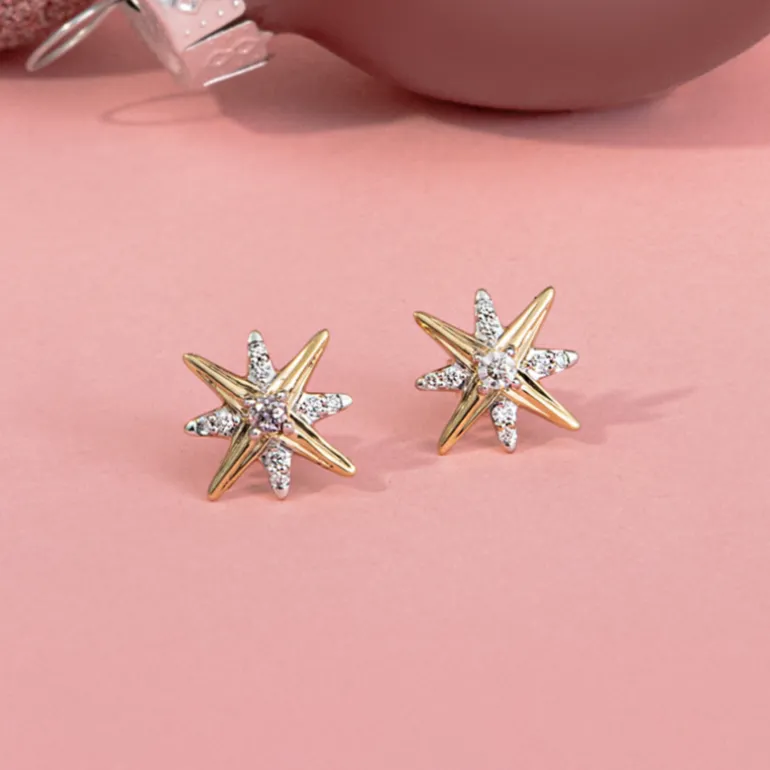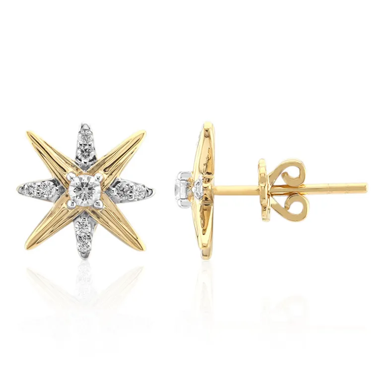 Lassen Sie sich von der Pracht des Himmels verzaubern mit diesen auffälligen Starburst-Diamantohrringen, die in 14 Karat Gold gefertigt wurden. Jeder Ohrring funkelt mit einer Kombination aus 18 lupenreinen Diamanten mit einem Gesamtgewicht von 0,248 Karat, die sorgfältig gefasst wurden, um ihren Brillantschliff und ihre außergewöhnliche Klarheit zu präsentieren. Mit einer zierlichen Größe von 11 mm und einem Gesamtgewicht von 2,7 Gramm Gold eignen sich diese Ohrringe sowohl für den eleganten Alltag als auch für besondere Anlässe. Stellen Sie sich vor, wie sie bei einem Abendessen bei Kerzenschein glitzern oder bei einem Frühlingsbrunch im Sonnenlicht schimmern.