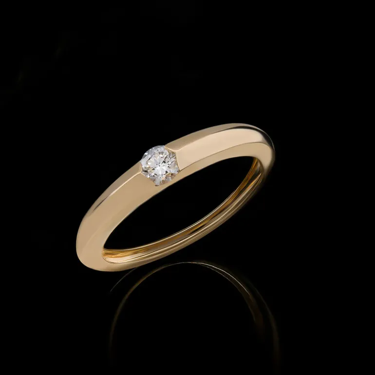 Entdecken Sie die zeitlose Eleganz dieses raffinierten Rings mit einem Brillanten von 0,197 Karat, eingebettet in ein schlankes Band aus 9-karätigem Gold, das einem klassischen Design eine moderne Wendung verleiht. Mit seinem Gewicht von ca. 1,41 Gramm Gold besticht dieses Schmuckstück durch seine Schlichtheit und seinen dezenten Glamour. Es eignet sich perfekt für den täglichen Gebrauch oder für besondere Anlässe und passt sowohl zu legeren als auch zu formellen Outfits und verleiht jedem Ensemble einen Hauch von Luxus.
