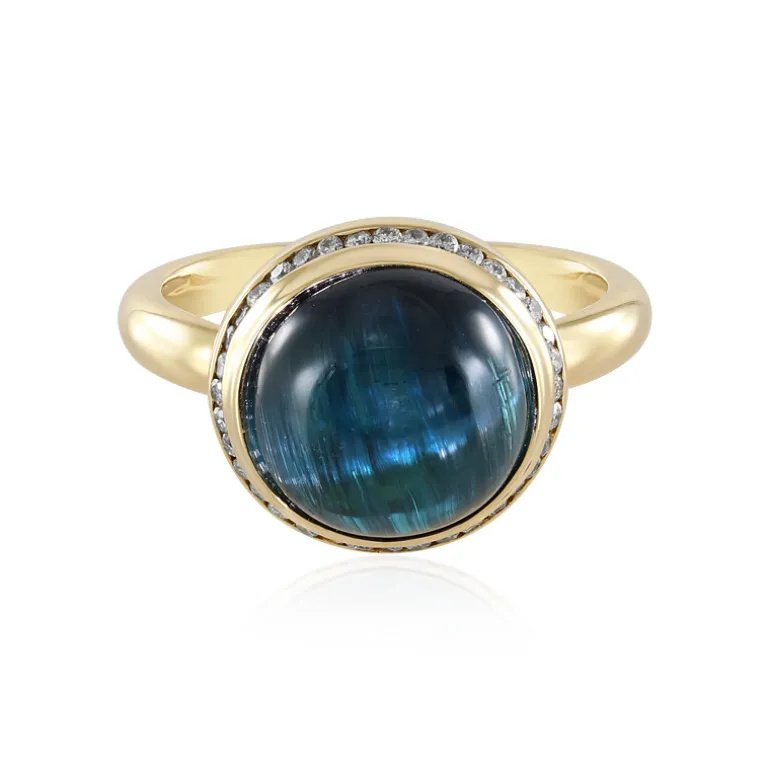 Afghanischer Indigolith Katzenauge 18K Gold Ring, 7ct