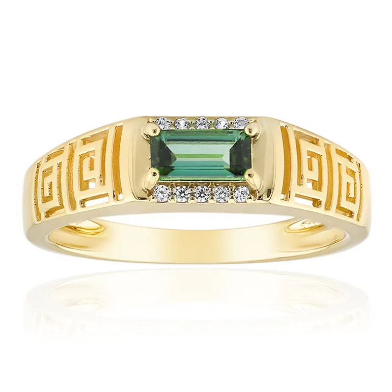 Entdecken Sie die Eleganz dieses brasilianischen Indigolith-Rings mit einem Stein im Baguetteschliff von 0,361 Karat, der von kambodschanischen Zirkon-Akzenten geschmückt wird. Das vergoldete 925er Sterlingsilberband mit einem Gewicht von 1,95 g strahlt Raffinesse aus. Dieses Schmuckstück eignet sich sowohl für legere als auch für formelle Anlässe und verleiht jedem Outfit einen Hauch von Luxus. Kombinieren Sie es mit einem klassischen Kleid oder einem modernen Ensemble, um anmutig zu glänzen.