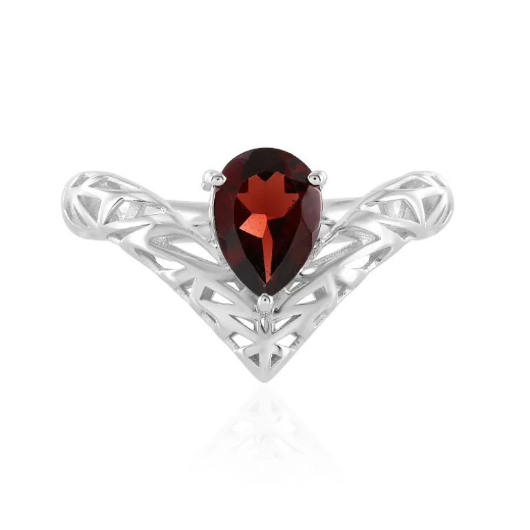 Entdecken Sie die Anziehungskraft dieses schicken indischen Granatrings, in dem Eleganz auf modernes Design trifft. Diese Kreation von Ornaments by de Melo mit einem 1,35 Karat großen, tropfenförmigen indischen Granat, gefasst in glänzendem 375er Weißgold, besticht durch seinen tiefroten Farbton und seine aufwendige Verarbeitung. Das einzigartige durchbrochene Band des Rings betont den Edelstein und macht ihn zu einem Statement-Stück, das sich für besondere Anlässe oder als Ergänzung für eine anspruchsvolle Alltagsgarderobe eignet. Lassen Sie diesen atemberaubenden Granatring zu Ihrem nächsten Lieblingsaccessoire werden.