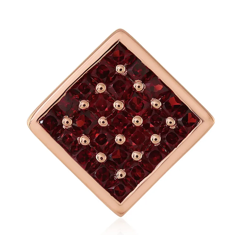 Entdecken Sie die Faszination indischer Granate mit diesem bezaubernden Anhänger aus rosévergoldetem 925er Sterlingsilber. Mit einer quadratischen Anordnung von 25 funkelnden Granaten im Prinzessinnenschliff strahlt dieses Schmuckstück Raffinesse und Eleganz aus. Mit einem Gewicht von 1,528 Karat wird der satte Burgunderfarbton der Edelsteine von der warmen Rosévergoldung wunderschön umrahmt. Mit einer Größe von 16 x 16 mm ist er ein auffälliges Accessoire, das sich mühelos von der Tagesgarderobe bis zum glamourösen Abendoutfit kombinieren lässt. Kombinieren Sie ihn mit einem eleganten schwarzen Kleid zum Ausgehen oder einer klassischen weißen Bluse für einen eleganten Tageslook.