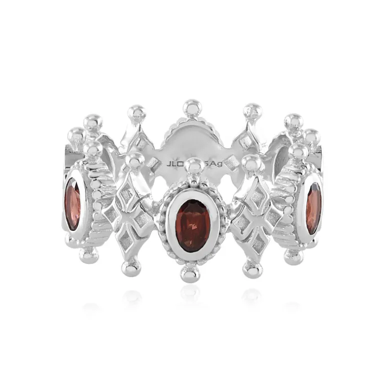 Entdecken Sie Raffinesse mit dem Indian Garnet Sterling Silver Ring. Dieses Schmuckstück mit sechs exquisiten Granaten im Ovalschliff aus Indien wurde von Dallas Prince Designs gefertigt. Das Band aus 925er Sterlingsilber ist mit raffinierten Details versehen und eignet sich sowohl für legere als auch für formelle Anlässe. Kombinieren Sie es mit einem schicken Kleid für einen Abend oder werten Sie Ihre Alltagskleidung mit seiner zeitlosen Eleganz auf.