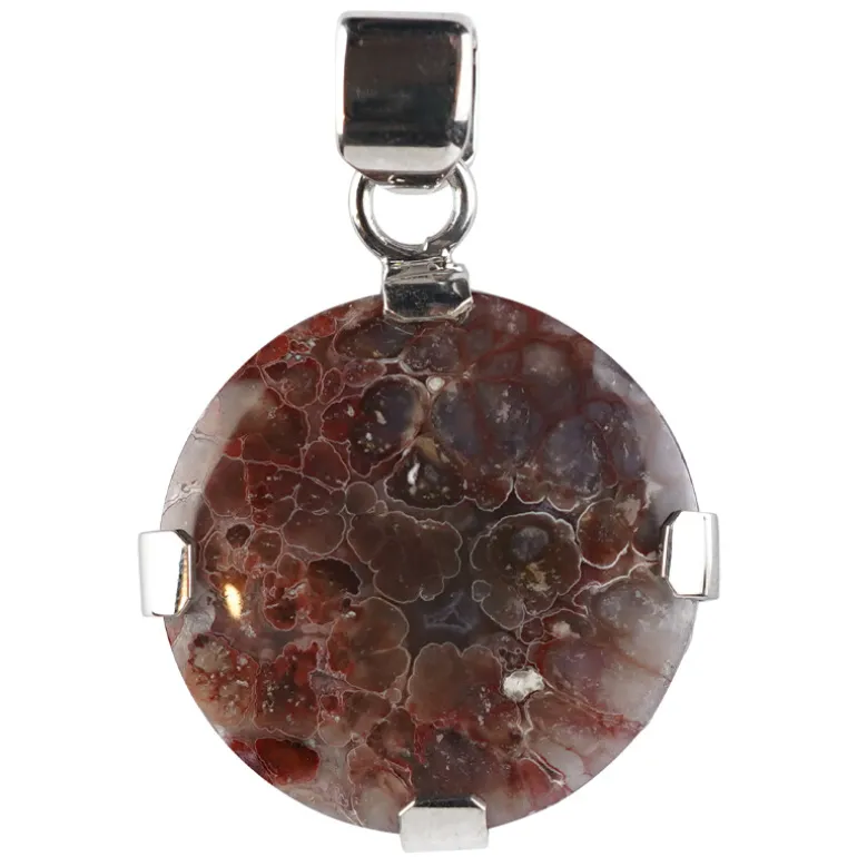 Entdecken Sie die bezaubernde Anziehungskraft dieses Anhängers aus indonesischem Java-Federachat, ein Meisterwerk der Naturkunst. Jeder 25-karätige Achat weist einzigartige, zarte Muster auf, die an die ätherische Schönheit von Federn erinnern und in einem runden Cabochon von etwa 25 mm eingefangen sind. Der 37 x 26 mm große Anhänger ist in hochwertiges 925er Sterlingsilber mit glattem Platin-Finish eingefasst und strahlt Eleganz und Raffinesse aus. Er ist ideal, um jedem Ensemble einen Hauch von exotischem Charme zu verleihen, und ist ein vielseitiges Accessoire, das sich sowohl für zwanglose Zusammenkünfte als auch für formelle Anlässe eignet.
