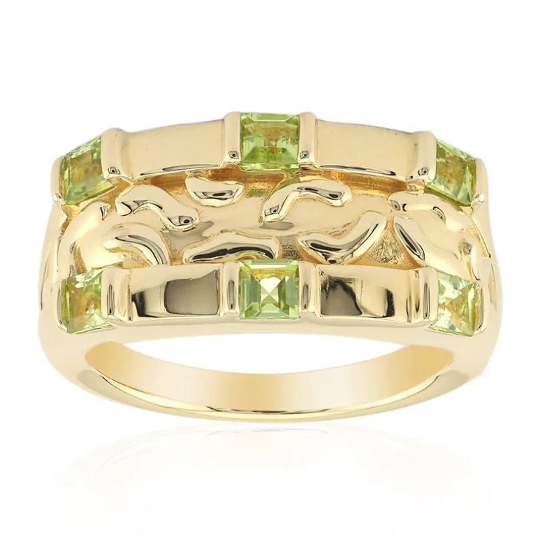 Tauchen Sie ein in das üppige Grün Chinas mit diesem Vintage-inspirierten Ring, gekrönt von sechs Jilin-Peridots mit quadratischem Stufenschliff und insgesamt 0,561 Karat. Das vergoldete Stück aus 925er Sterlingsilber mit einem Gewicht von ca. 5,21 g wird durch einen tansanischen Zirkon vervollständigt und versprüht klassischen Charme. Das zeitlose Design ist ideal, um einem Cocktailkleid einen Farbtupfer zu verleihen oder ein legeres Outfit aufzuwerten, und verspricht dauerhafte Attraktivität.