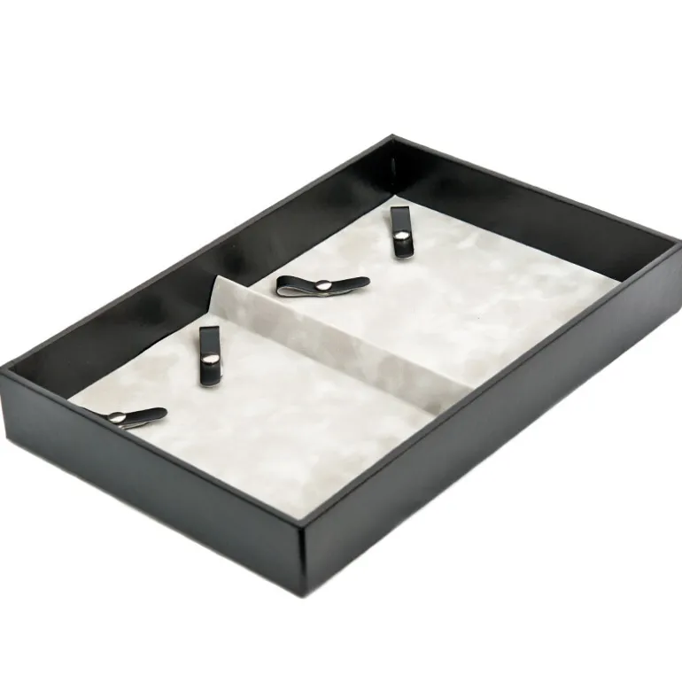 Entdecken Sie die perfekte Mischung aus Funktionalität und Stil mit dieser eleganten Schmuckablage. Die geräumigen Abmessungen von 29 x 19 x 4 cm bieten ausreichend Platz für Ihre kostbaren Edelsteine und Schmuckstücke. Die Kombination aus plüschigem grauem Samtfutter und schickem schwarzem Äußeren sorgt dafür, dass Ihre Schätze elegant präsentiert werden und dennoch leicht zugänglich sind. Dieses Tablett ist ideal für Liebhaber und Sammler und passt zu jeder Kommode und zu jedem Safe, was es zu einem zeitlosen Stück für die Präsentation Ihrer Sammlung macht.