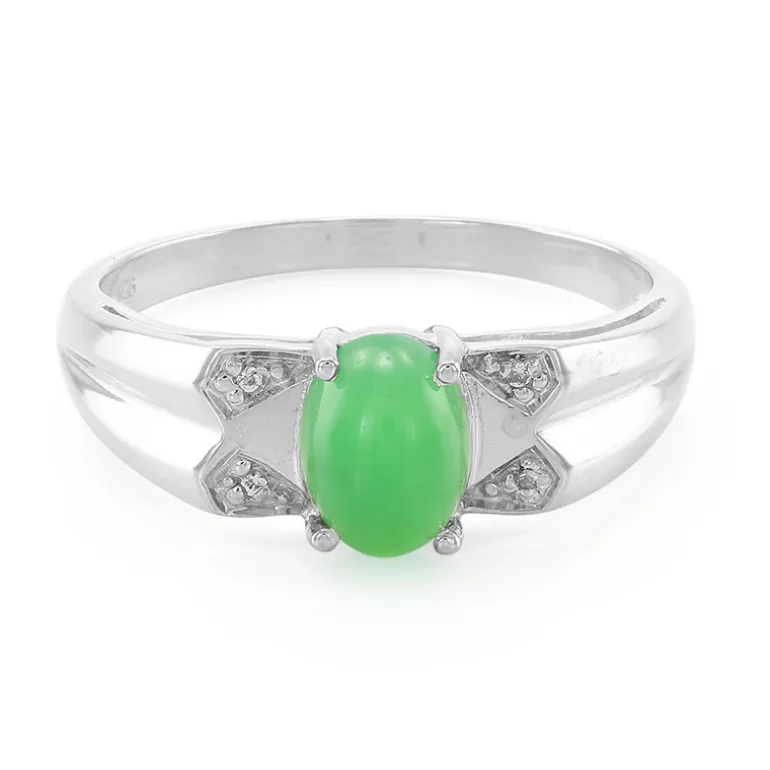 Entdecken Sie den Charme dieses Chrysopras-Sterlingsilber-Herrenrings, der einen lebhaften ovalen Cabochon-Chrysopras von 0,72 Karat aus Australien präsentiert. Akzentuiert durch vier funkelnde brasilianische weiße Topase, strahlt dieser Ring Eleganz aus. Er eignet sich sowohl für formelle Anlässe als auch für Freizeitaktivitäten und passt sowohl zu Anzügen als auch zu Alltagskleidung und bietet einen einzigartigen Hauch von Raffinesse.