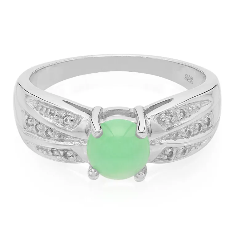 Dieser raffinierte Herrenring präsentiert einen australischen Imperial Chrysopras von 0,92 Karat, gefasst in hochwertigem 925er Sterlingsilber. Der runde Edelstein im Cabochon-Schliff wird von 14 glitzernden weißen Topas-Akzenten aus Brasilien ergänzt, die ihm einen Hauch von Brillanz verleihen. Mit einem Gewicht von ca. 4,57 g verbindet dieses Schmuckstück Stärke mit Eleganz und ist somit eine perfekte Ergänzung zu jeder Kleidung. Ideal für das tägliche Tragen oder als auffälliges Accessoire für besondere Anlässe.