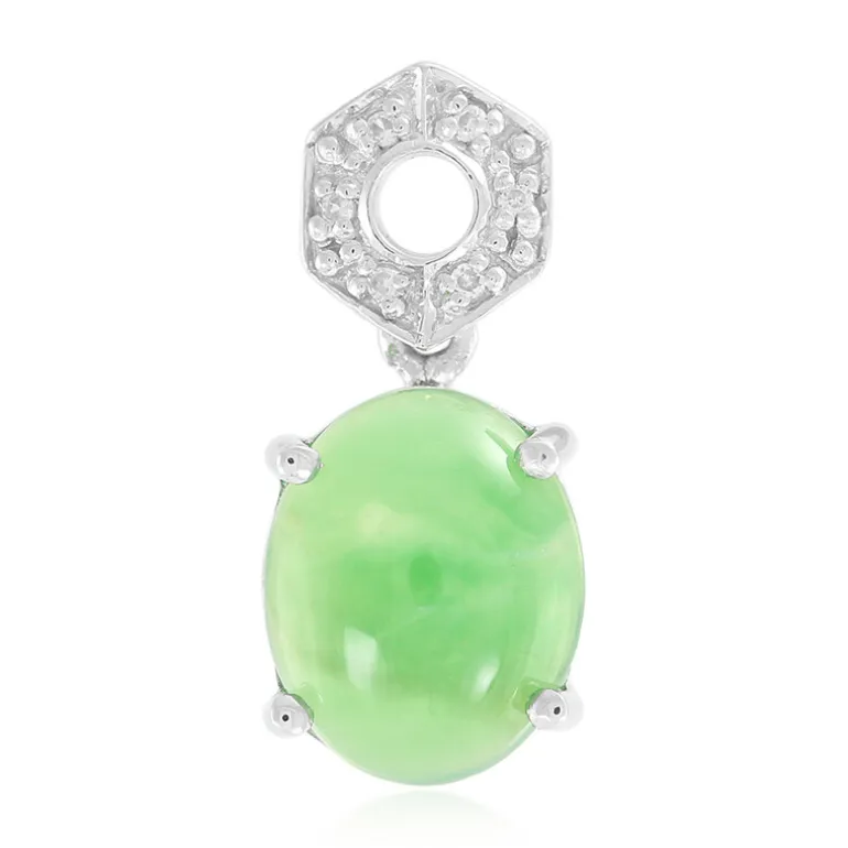 Entdecken Sie die lebendige Anziehungskraft dieses australischen Chrysopras-Anhängers mit einem exquisiten ovalen Cabochon von 2,09 Karat, der in üppigen Grüntönen erstrahlt. Schimmernde Zirkon-Akzente von insgesamt 0,043 ct umgeben das Herzstück und verleihen ihm ein subtiles Funkeln. Der Anhänger aus poliertem 925er Sterlingsilber misst 20 x 9 mm und ist ein raffiniertes Schmuckstück. Perfekt für einen eleganten Tag oder einen Abend, verleiht er jedem Outfit einen Hauch von Raffinesse.