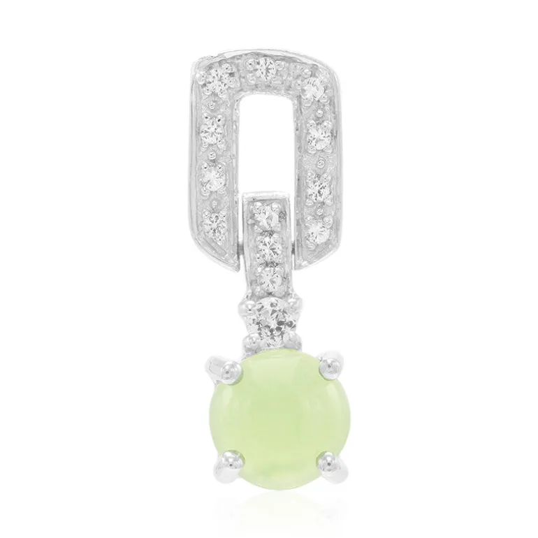 Entdecken Sie die Faszination unseres auffälligen Anhängers mit einem fesselnden runden Cabochon aus australischem Chrysopras, akzentuiert durch funkelnden weißen Topas. Dieses exquisite Stück hat ein Gesamtgewicht von 1,024 ct und ist elegant in Sterlingsilber gefasst. Dieser Anhänger ist ideal, um jedem Outfit einen Hauch von Eleganz zu verleihen, und verspricht eine vielseitige Ergänzung Ihrer Schmucksammlung zu werden. Kombinieren Sie ihn mit Ihrer Lieblingskette für einen sofortigen klassischen Look, der sich sowohl für den Tag als auch für einen eleganten Abend eignet.