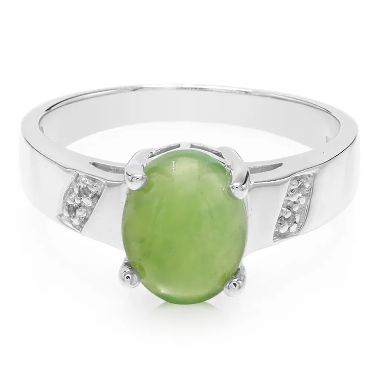 Entdecken Sie die Eleganz dieses atemberaubenden Chrysopras-Rings mit einem fesselnden ovalen Cabochon von 1,1 Karat aus Australien. Der Ring ist in 925er Sterlingsilber gefasst und funkelt mit vier brasilianischen weißen Topas-Akzenten. Er eignet sich perfekt für besondere Anlässe oder als eleganter Alltagsschmuck. Kombinieren Sie ihn mit Ihrem Lieblingsabendkleid oder einem eleganten Freizeitoutfit für einen exquisiten Look.