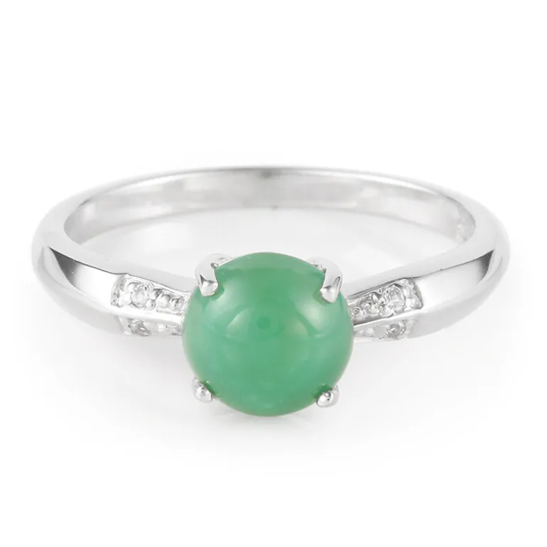 Entdecken Sie die Anziehungskraft der australischen Eleganz mit diesem prächtigen Ring, der einen kaiserlichen Chrysopras von 1 Karat präsentiert. Umgeben von vier funkelnden weißen Topasen aus Brasilien, ist der zentrale Edelstein in einen runden Cabochon geschliffen, der seinen leuchtend grünen Farbton hervorhebt. Das aus hochwertigem 925er Sterlingsilber gefertigte Schmuckstück vereint Anmut und Haltbarkeit. Er ist mühelos vielseitig und verleiht sowohl legerer als auch formeller Kleidung einen Hauch von Farbe, was ihn zu einer idealen Wahl für verschiedene Anlässe macht.