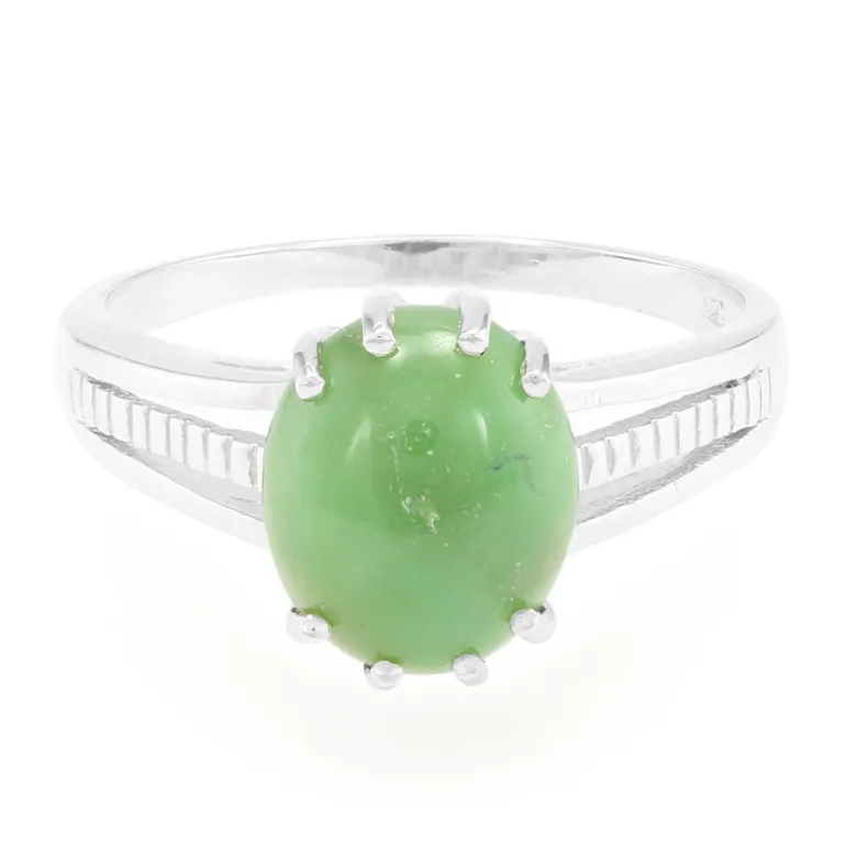 Entdecken Sie den verführerischen Charme unseres australischen Chrysopras-Silberrings, ein unverwechselbares Stück für jede Sammlung. Der ovale Edelstein im Cabochon-Schliff mit 1,95 Karat ist in 925er Sterlingsilber eingebettet und wiegt etwa 1,91 g. Mit seinem verlockenden mintgrünen Farbton ist dieser Ring ideal, um Ihrem Ensemble einen Hauch von naturinspirierter Eleganz zu verleihen. Er eignet sich sowohl für den Alltag als auch für besondere Anlässe und ergänzt nahtlos Ihre schicke Garderobe.