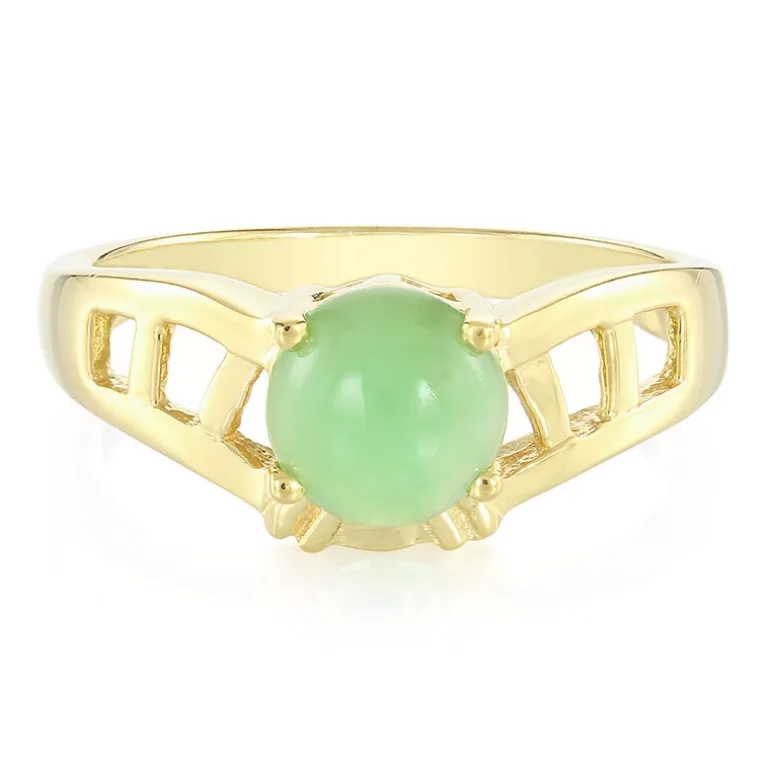 Entdecken Sie die erfrischende Anziehungskraft dieses Rings aus vergoldetem 925er Sterlingsilber, gekrönt von einem 7 mm großen runden Cabochon aus australischem Imperial Chrysopras mit insgesamt 0,76 Karat. Der grüne Farbton des Chrysopras ist eine Anspielung auf die Vitalität des Frühlings und macht ihn zu einer lebendigen Ergänzung für jedes Ensemble. Mit einem Gewicht von etwa 2,87 g strahlt der Ring sowohl Eleganz als auch Substanz aus. Dieser Ring eignet sich sowohl für den eleganten Tag als auch für den charmanten Abend und wird Ihre Schmucksammlung mit seinem einzigartigen Glanz bereichern.