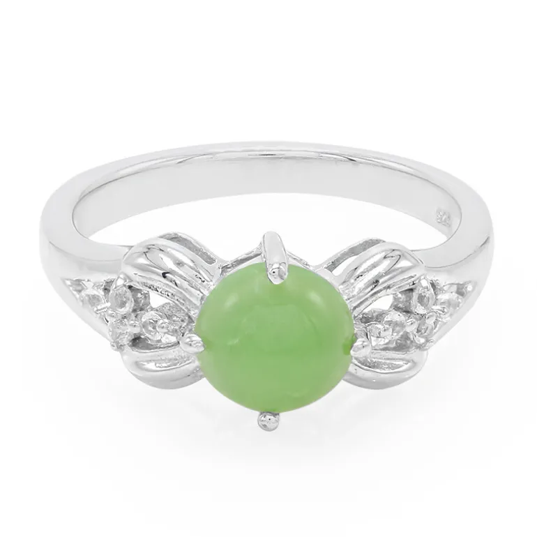 Entdecken Sie die Anziehungskraft dieses ruhigen Rings aus australischem Chrysopras (0,74 ct), flankiert von funkelnden brasilianischen Weißtopasen (0,088 ct). Der runde Cabochon-Schliff des zentralen Edelsteins zeigt einen üppigen grünen Farbton, der sowohl beruhigend als auch fesselnd ist. Der aus 925er Sterlingsilber gefertigte Ring verspricht neben seiner schlichten Eleganz auch Langlebigkeit. Mit seinen Maßen von 26×20,5 mm ist er ein gewagter Blickfang an Ihrem Finger, der sich sowohl für zwanglose Brunches als auch für formelle Abendveranstaltungen eignet. Kombinieren Sie ihn mit pastellfarbenen Ensembles, um die leuchtende Farbe des Edelsteins zu betonen, oder mit neutralen Tönen für einen subtilen Hauch von Raffinesse.
